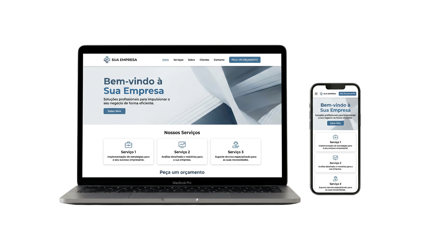 Estrutura pensada para converter visitas em pedidos de orçamento.